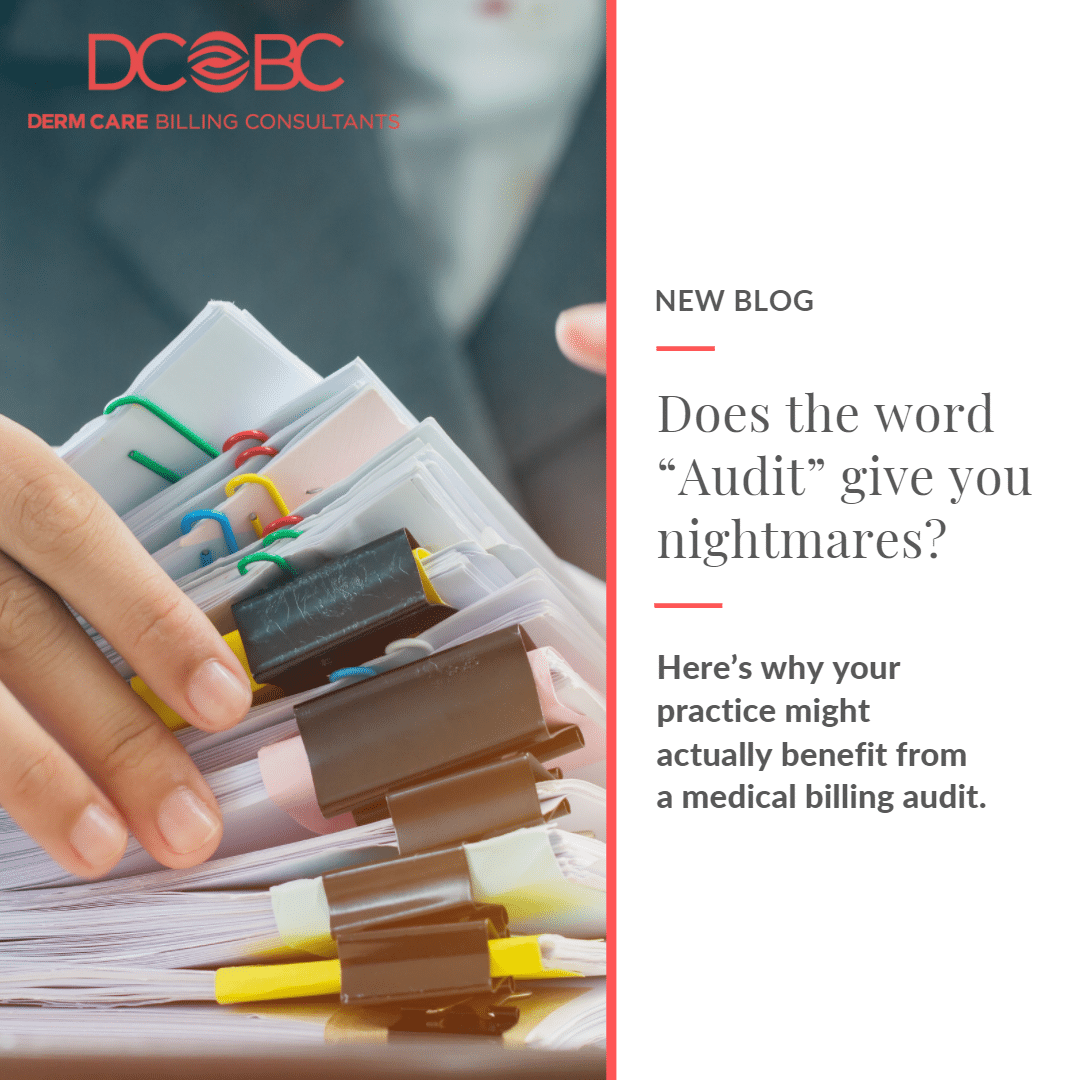 Dermatologists – we’re looking at you! Together with every team member in your practice, you do good things for people looking to enhance their skin, to have a problematic issue dealt with or to receive quality care for a dangerous medical condition like skin cancer. This is where you excel. It’s your area of expertise and people have come to rely on you. But – we have to ask – Are there some opportunities for improvement? Do you tremble at the mere mention of the word “audit?” We’re not talking about an audit of your finances and a visit from the government but, actually, yes we ARE talking about your finances and how to improve the overall financial health of your practice. How? By undertaking a medical billing audit (MBA). Trust us, it’s not as scary as it sounds!